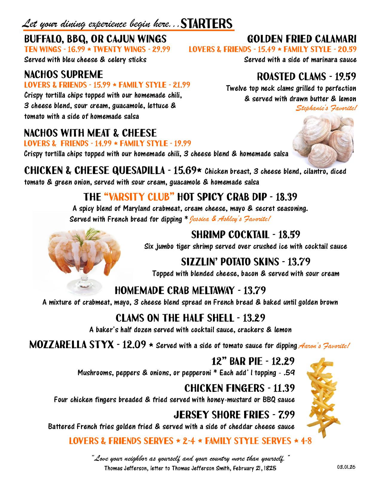 Starters Menu